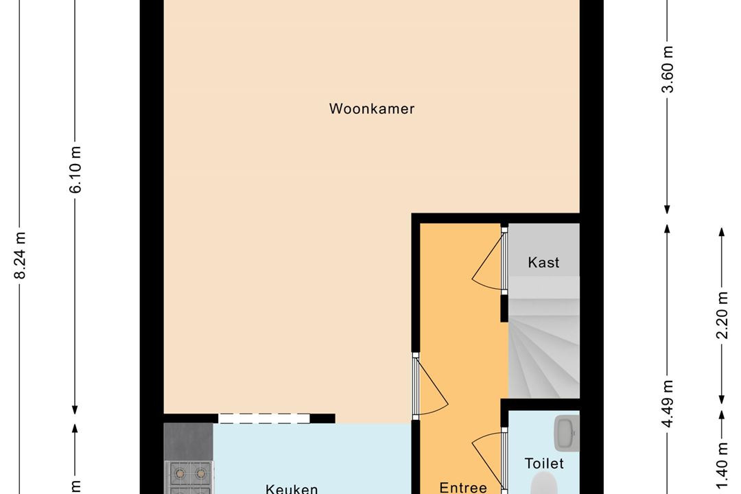 hal met meterkast (met dubbele aardlekschakelaar en 'slimme' meter) en trap (waaronder kast) naar eerste verdieping;